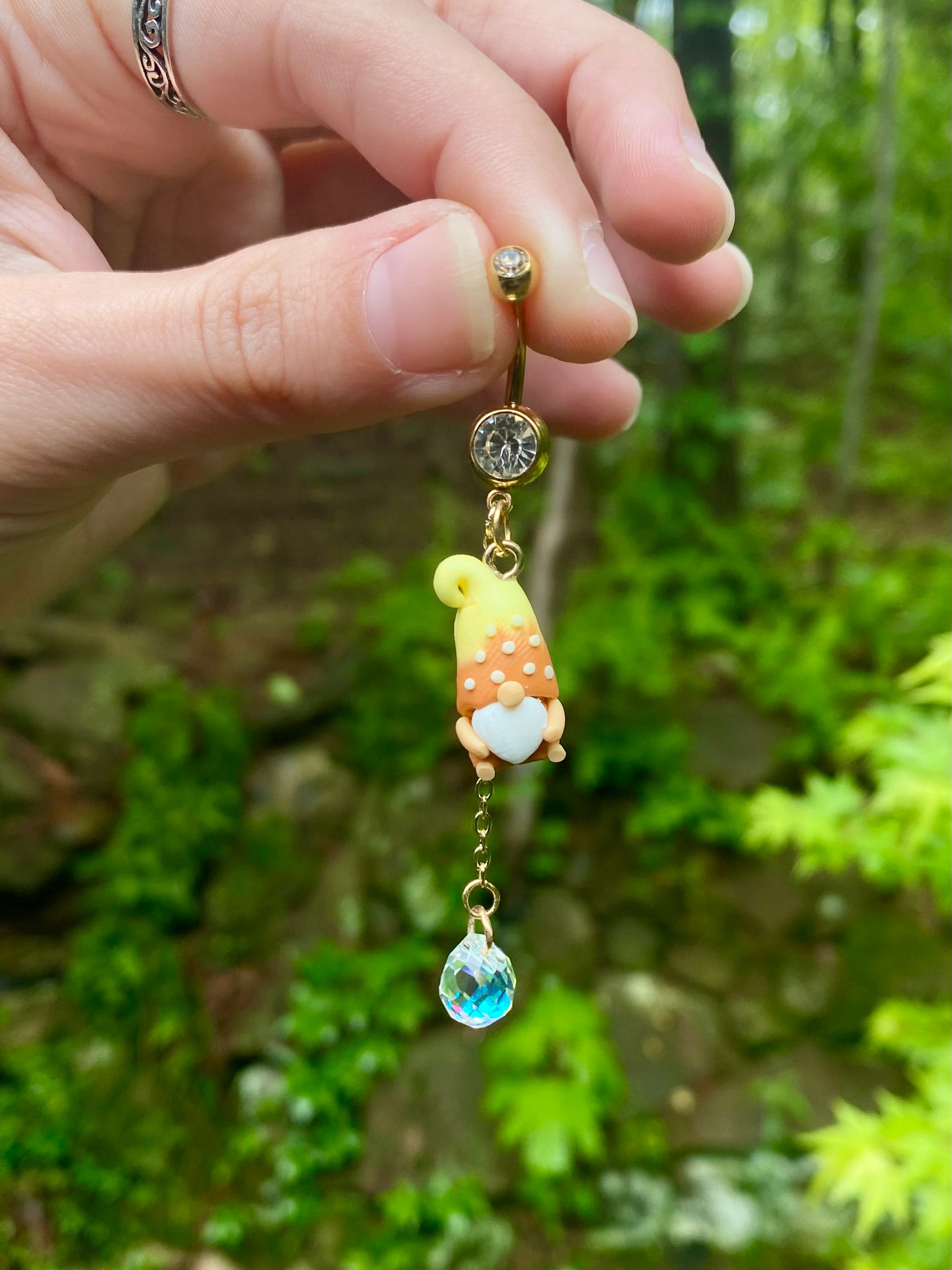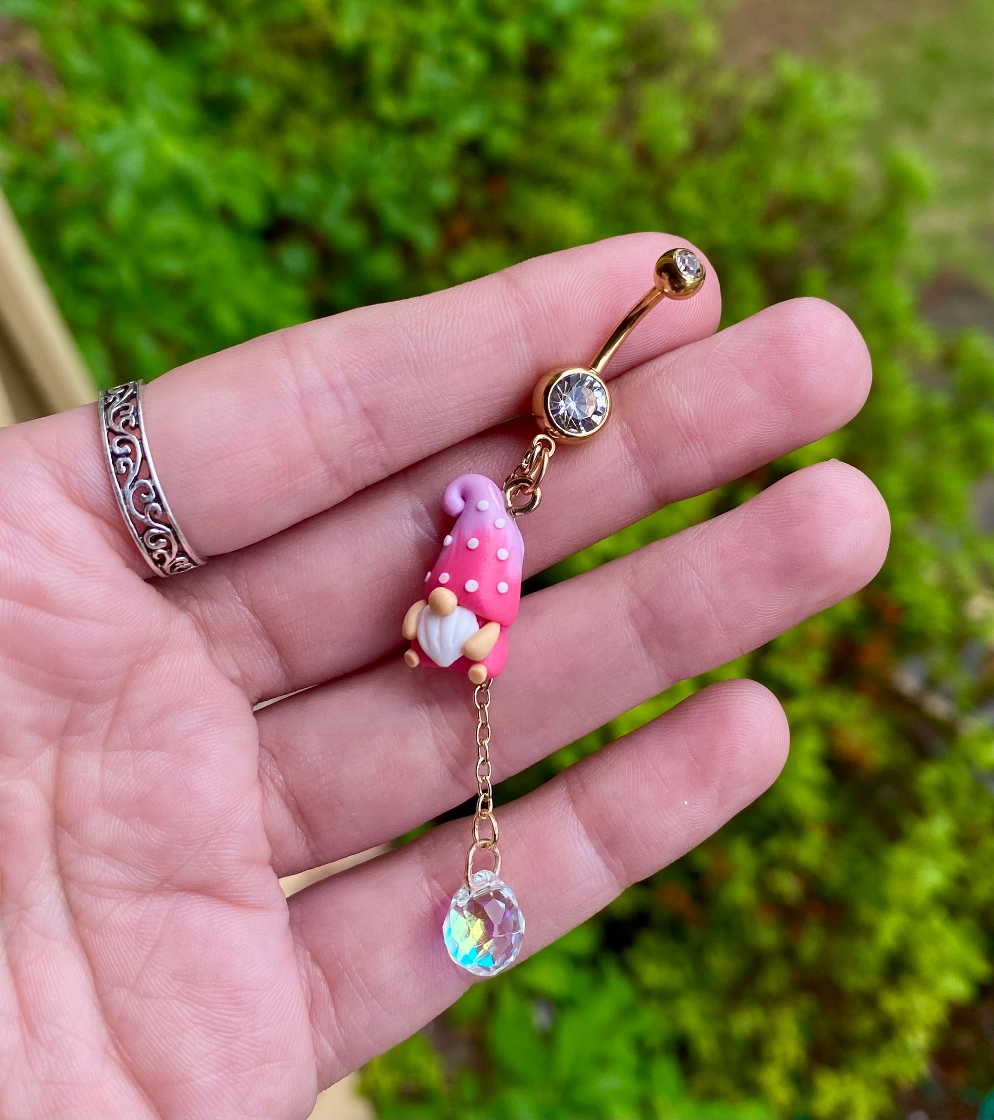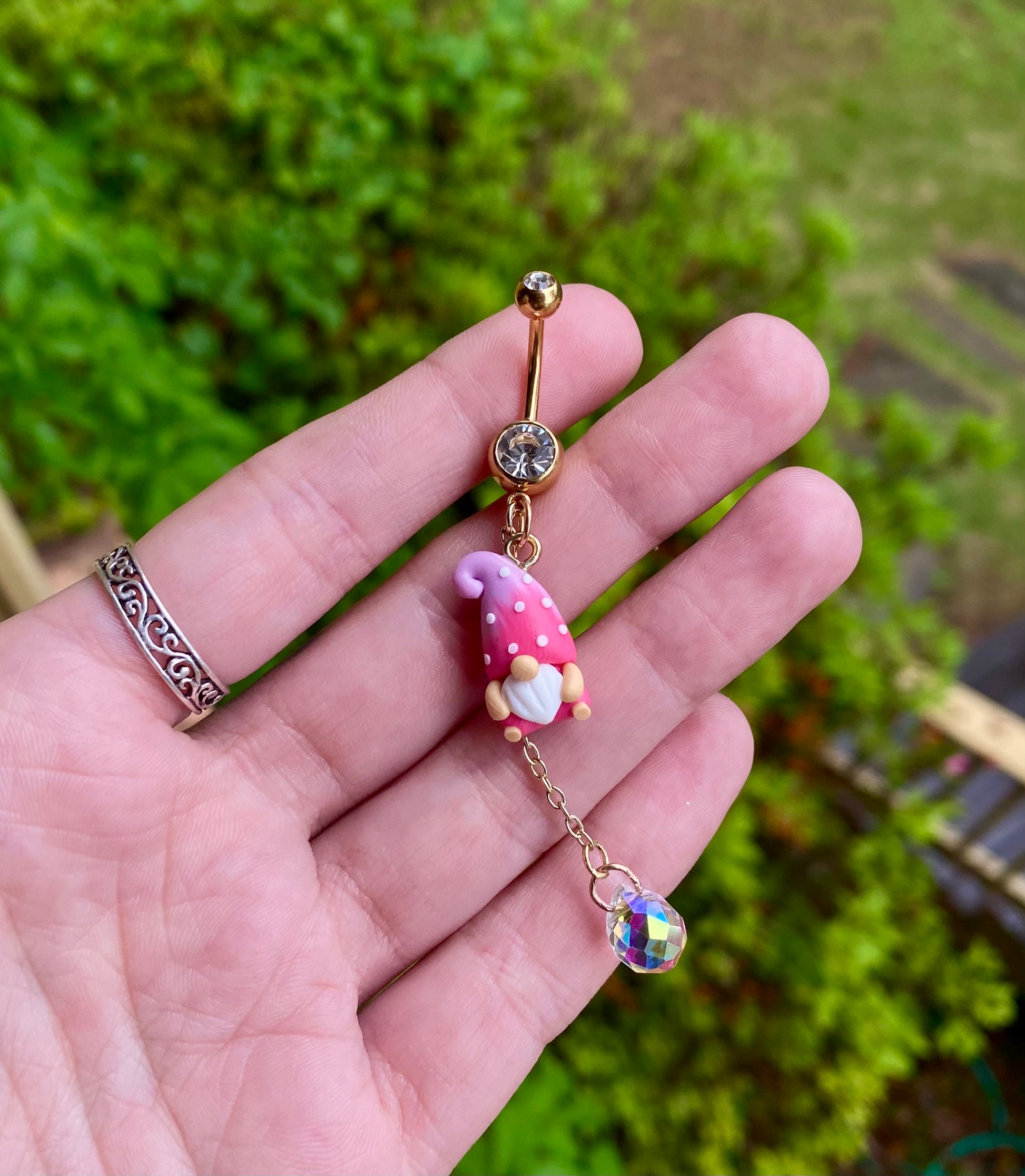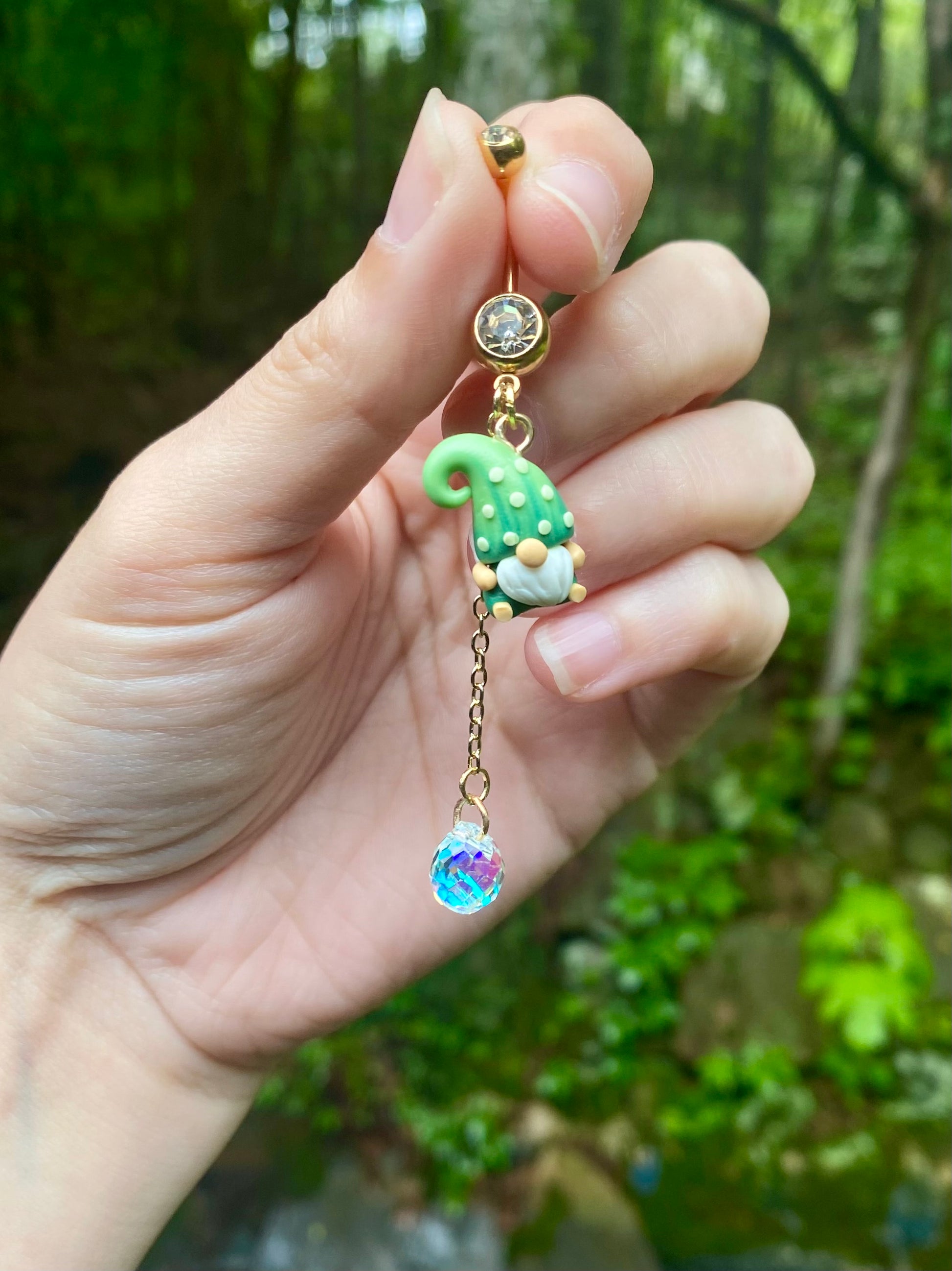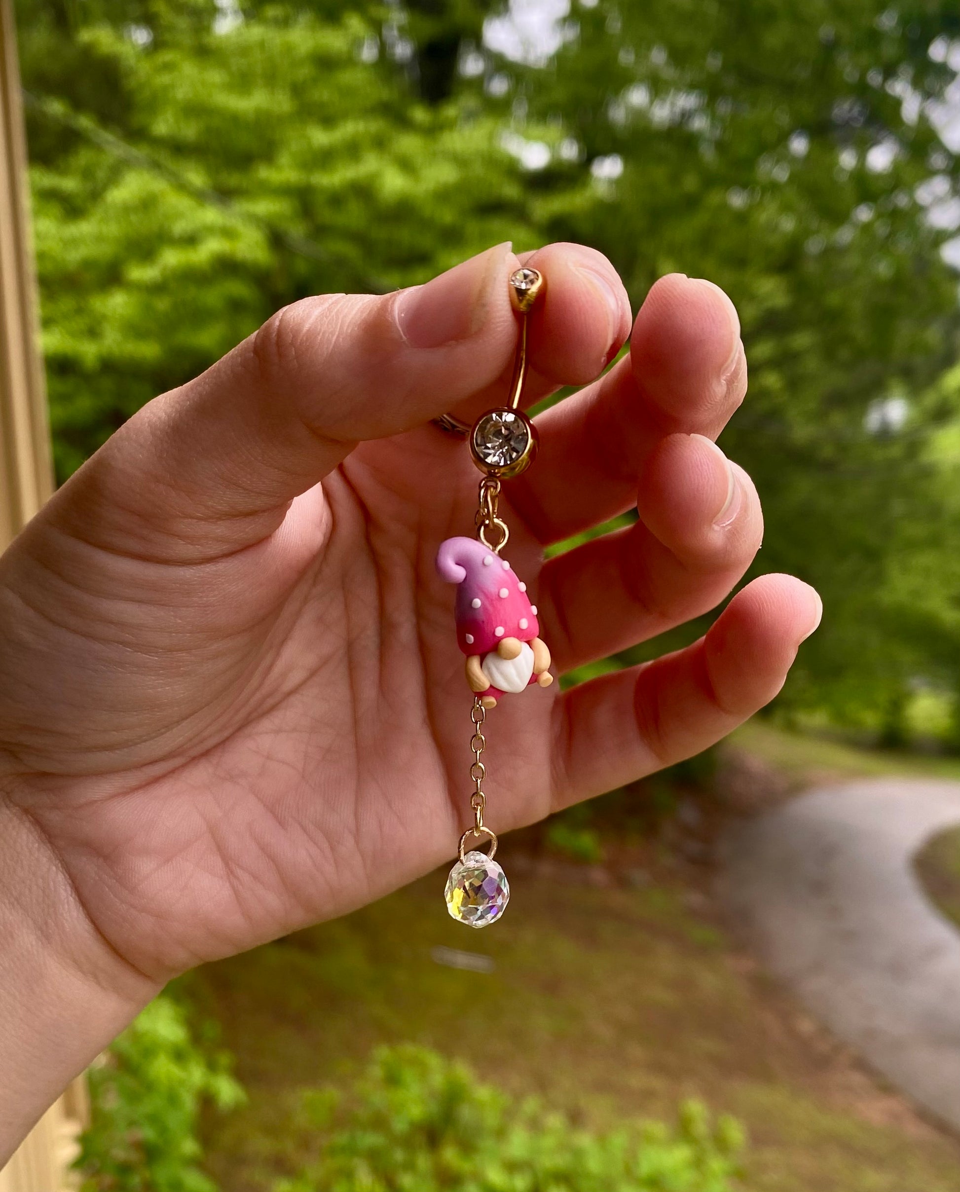 Adorable mini garden gnome suncatcher crystal dangle belly button rings available in your favorite color!