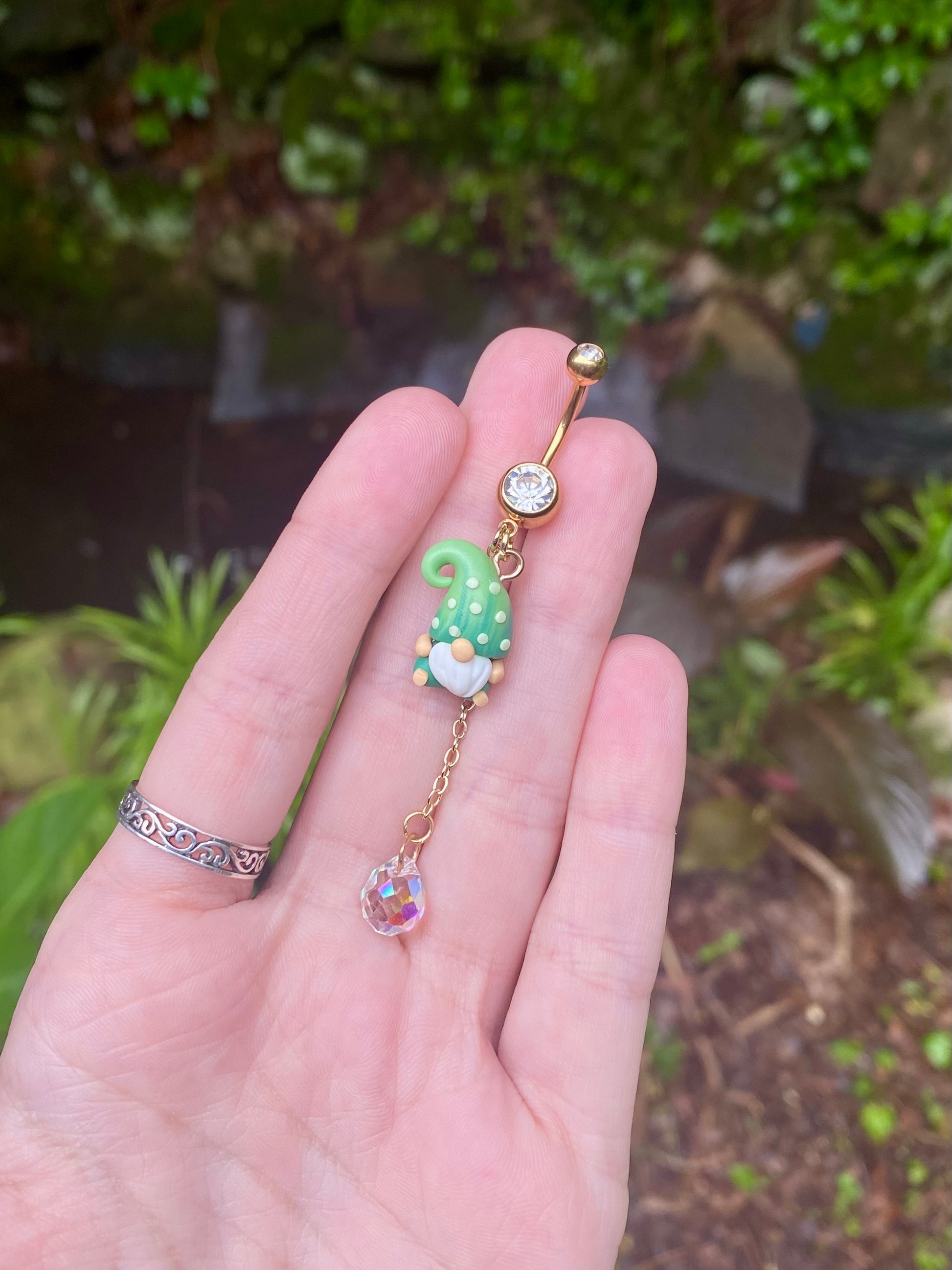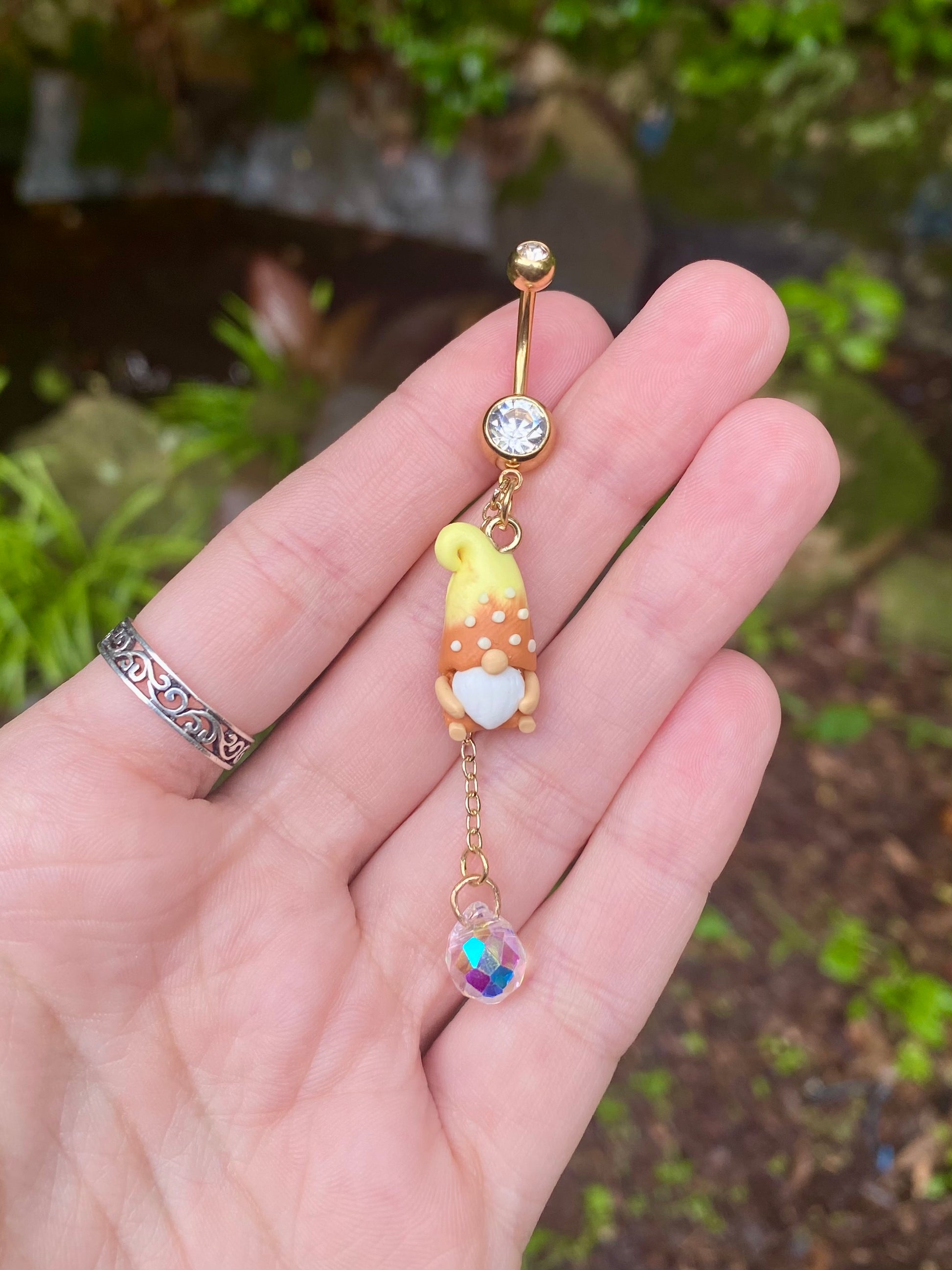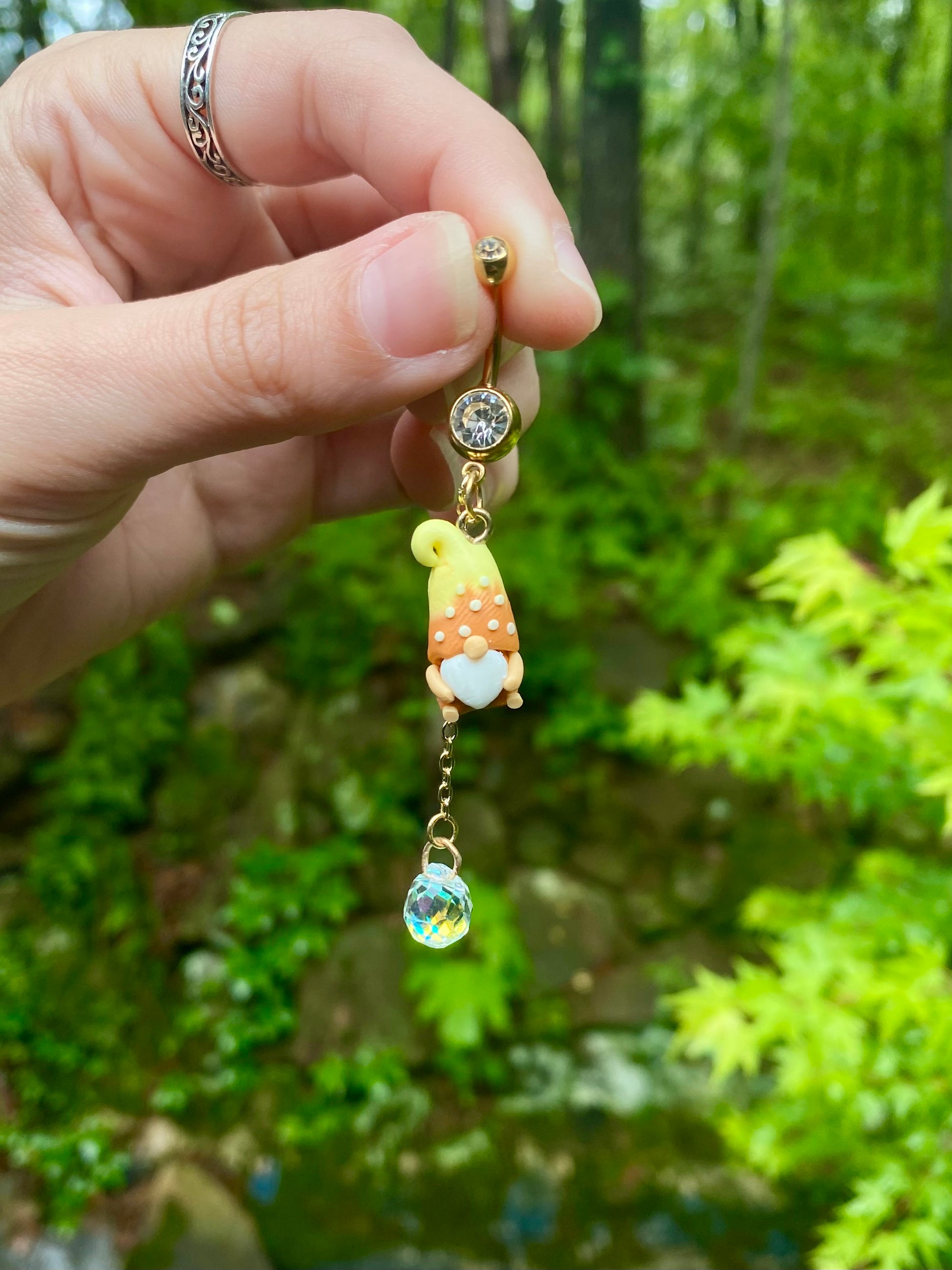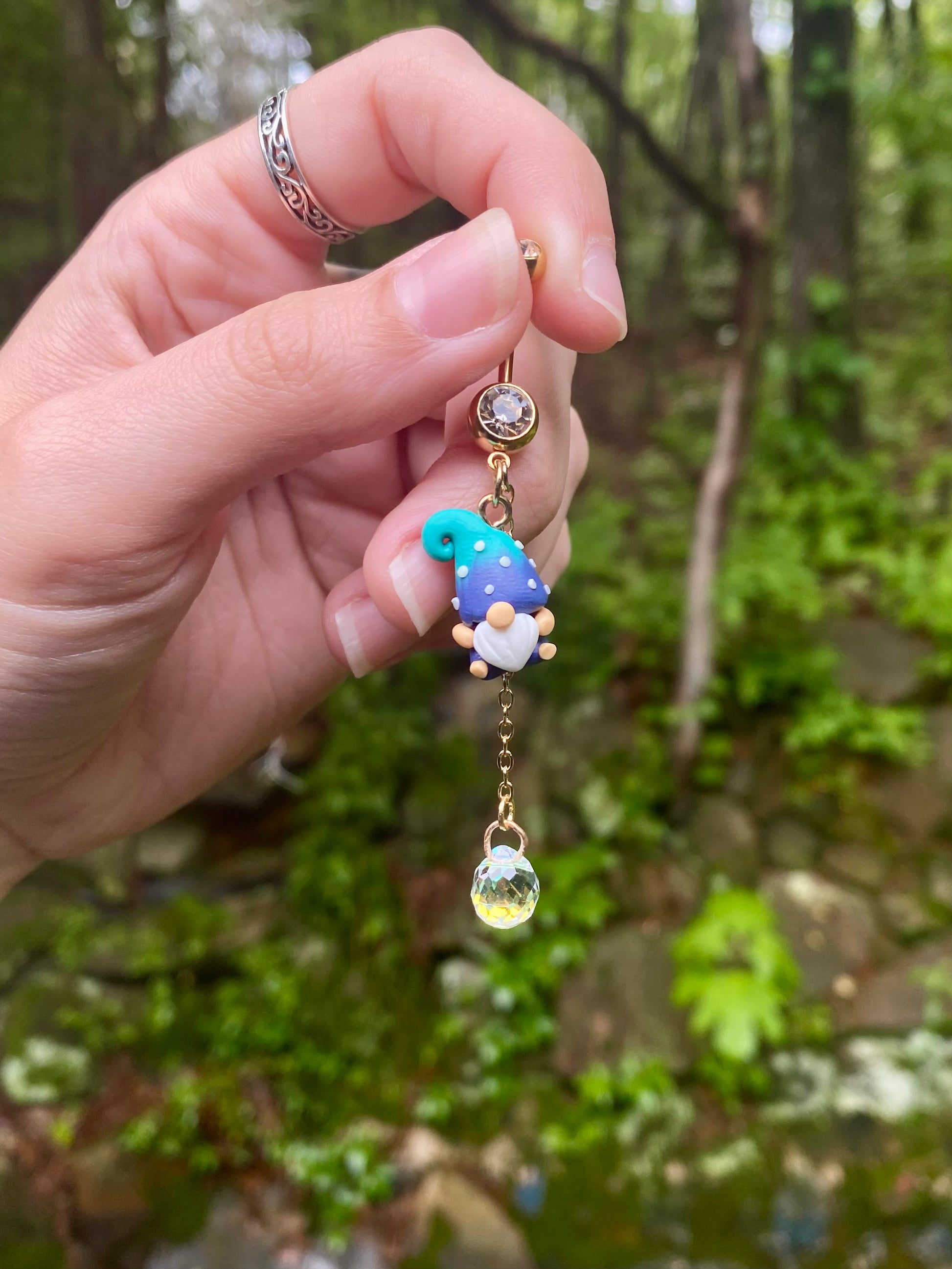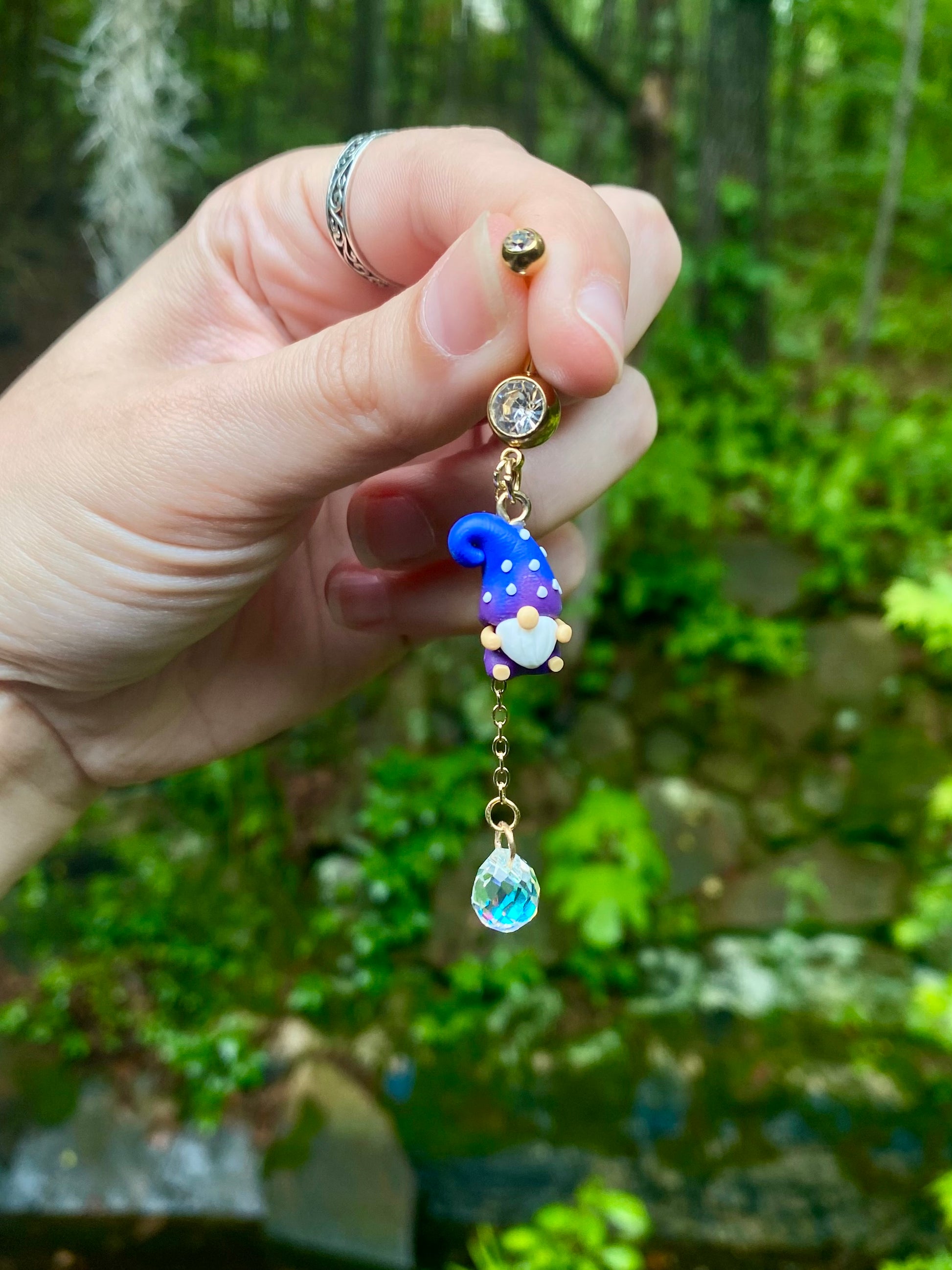 Adorable mini garden gnome suncatcher crystal dangle belly button rings available in your favorite color!