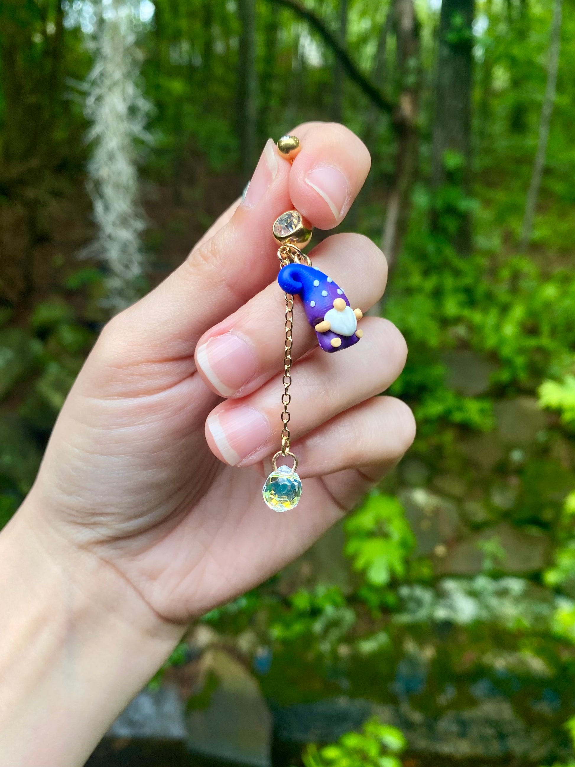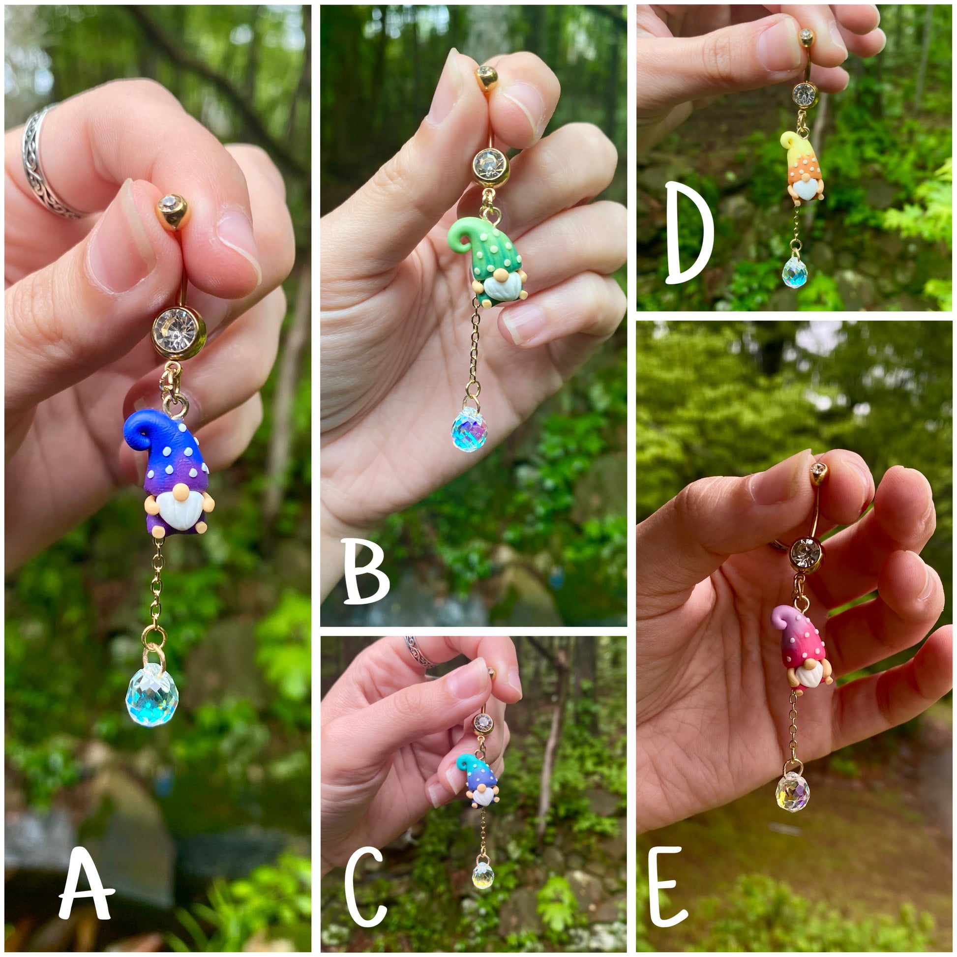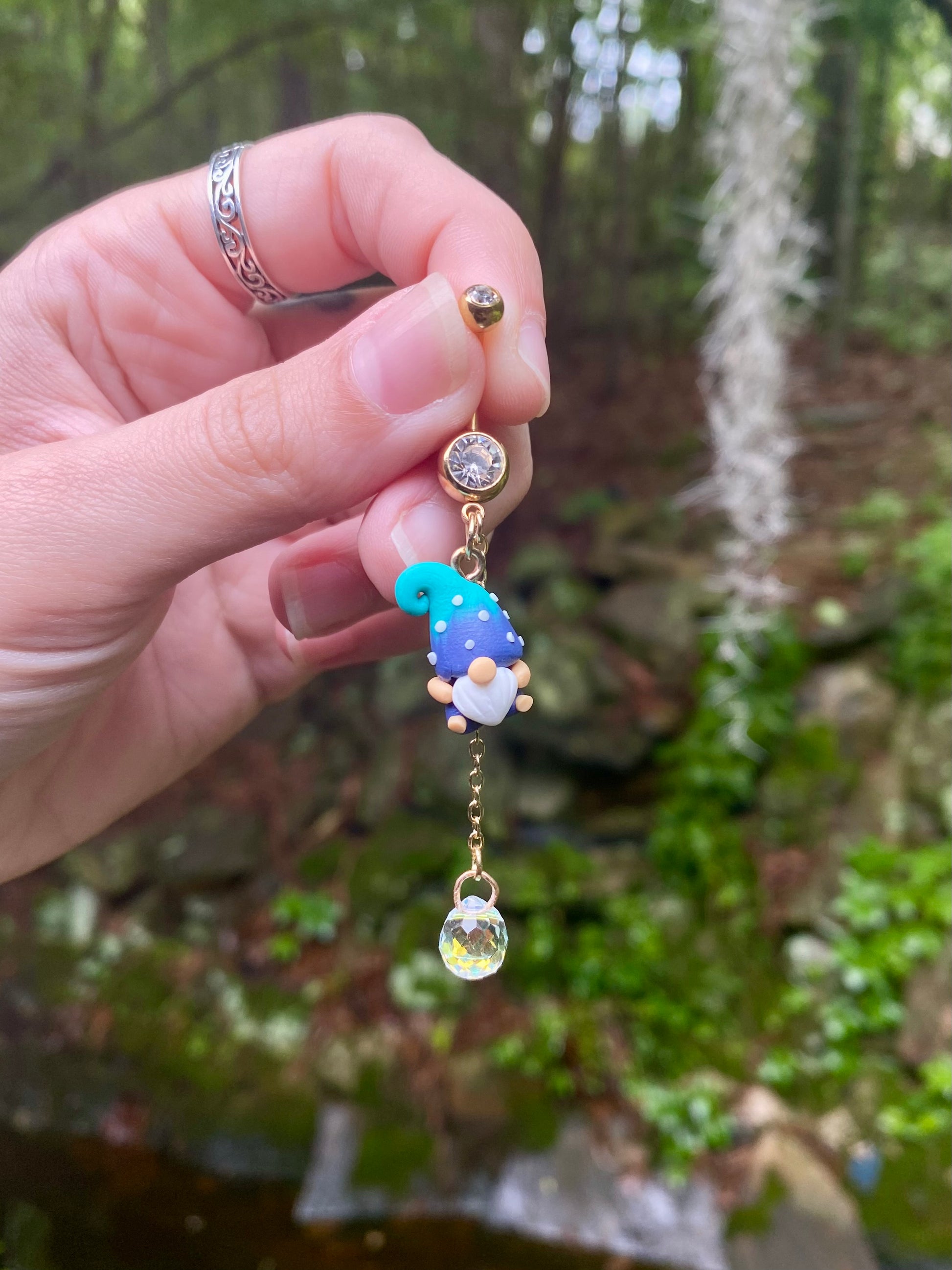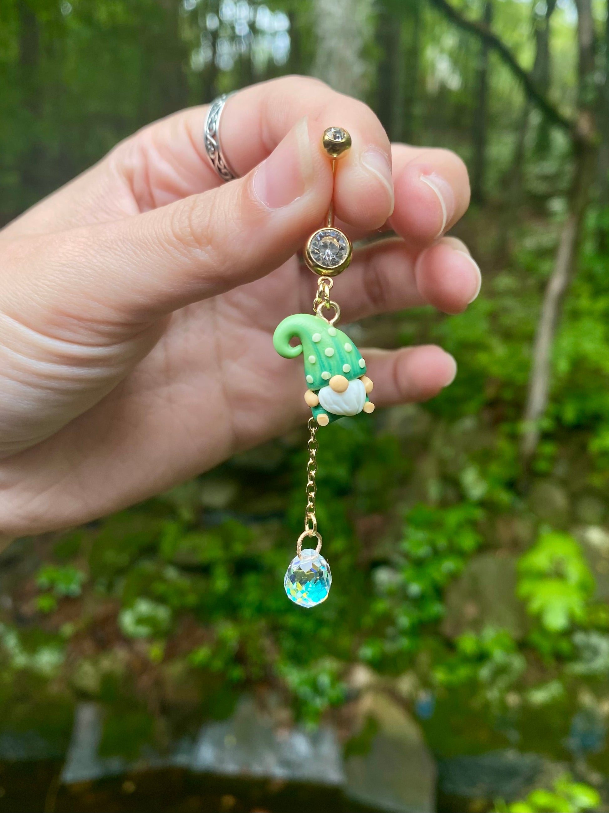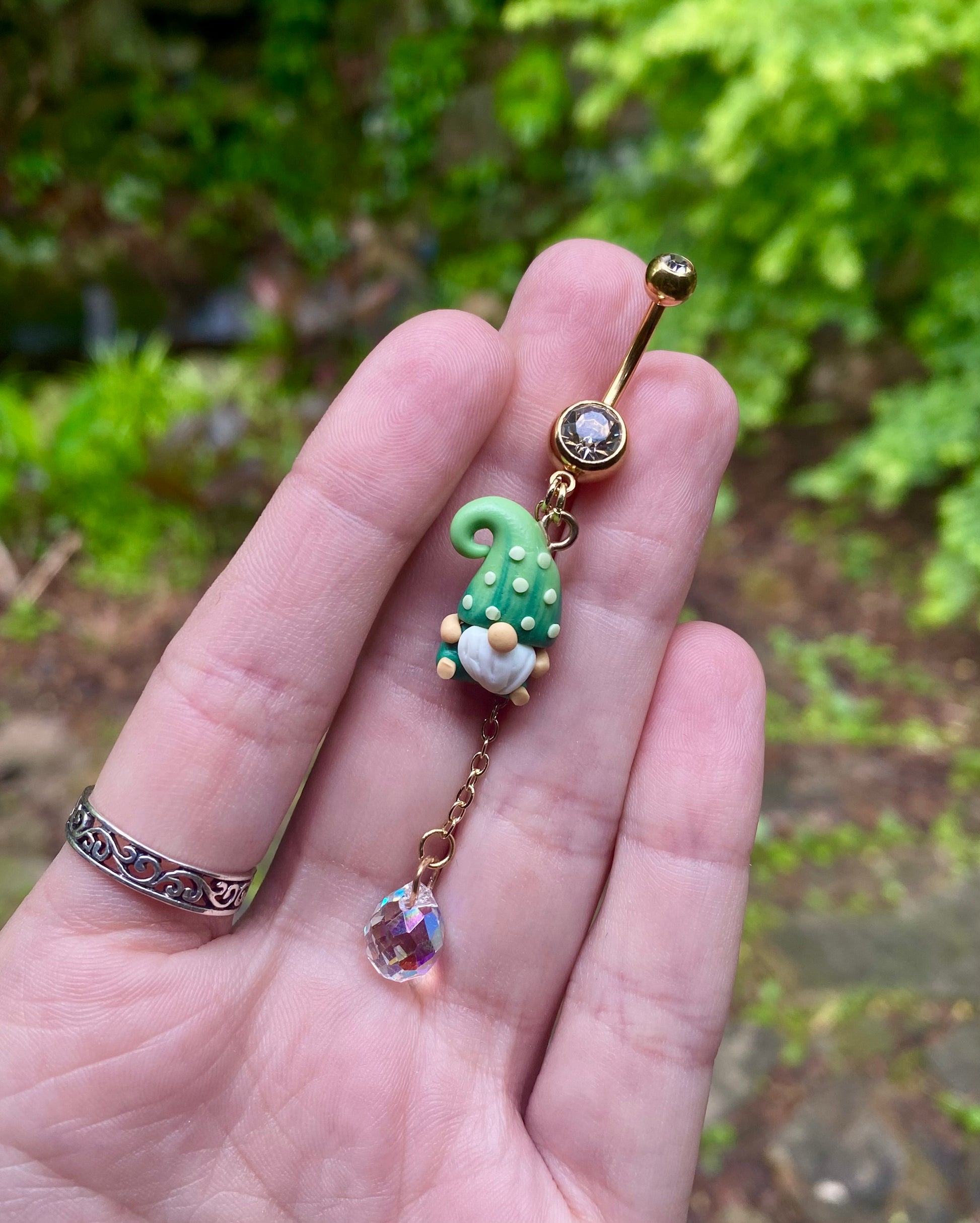 Adorable mini garden gnome suncatcher crystal dangle belly button rings available in your favorite color!